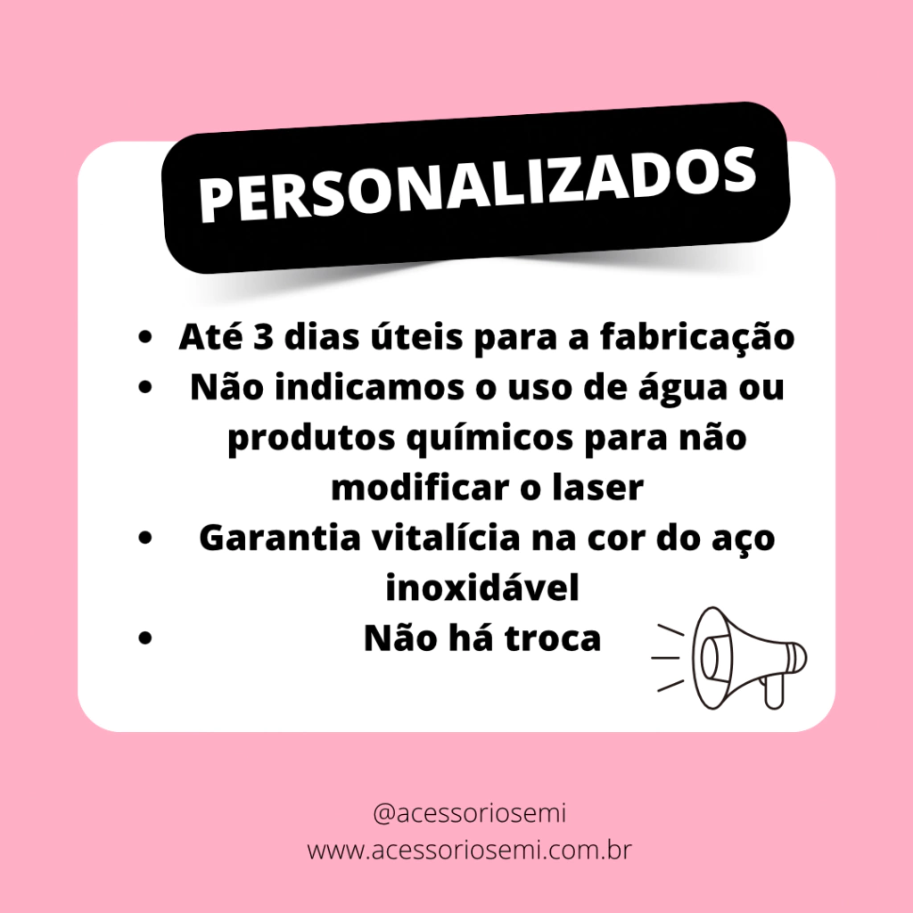 - Não recomendamos molhar ou passar produtos químicos para não correr o risco de mudar a cor do laser
